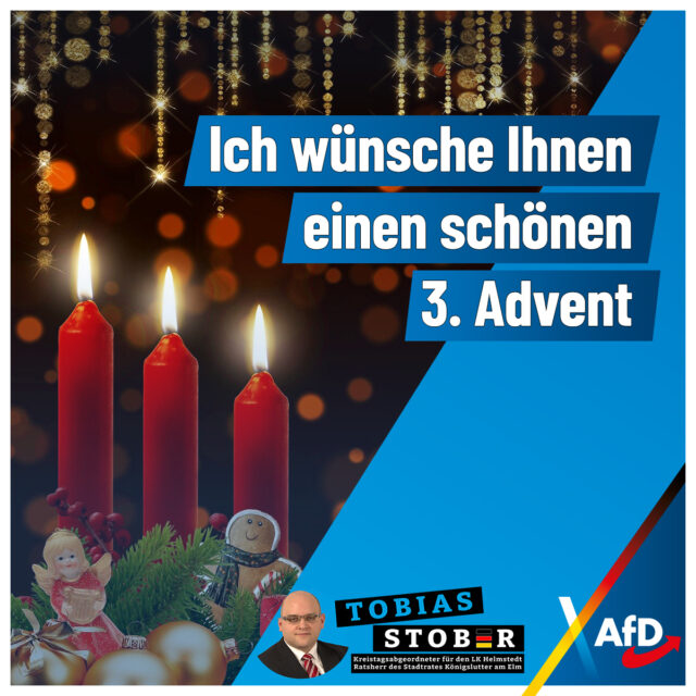 Liebe Freunde, Parteikollegen und Unterstützer der AfD, ich wünsche Ihnen und Ihrer Familie einen schönen 3.Advent 🕯🕯🕯 #AfD...