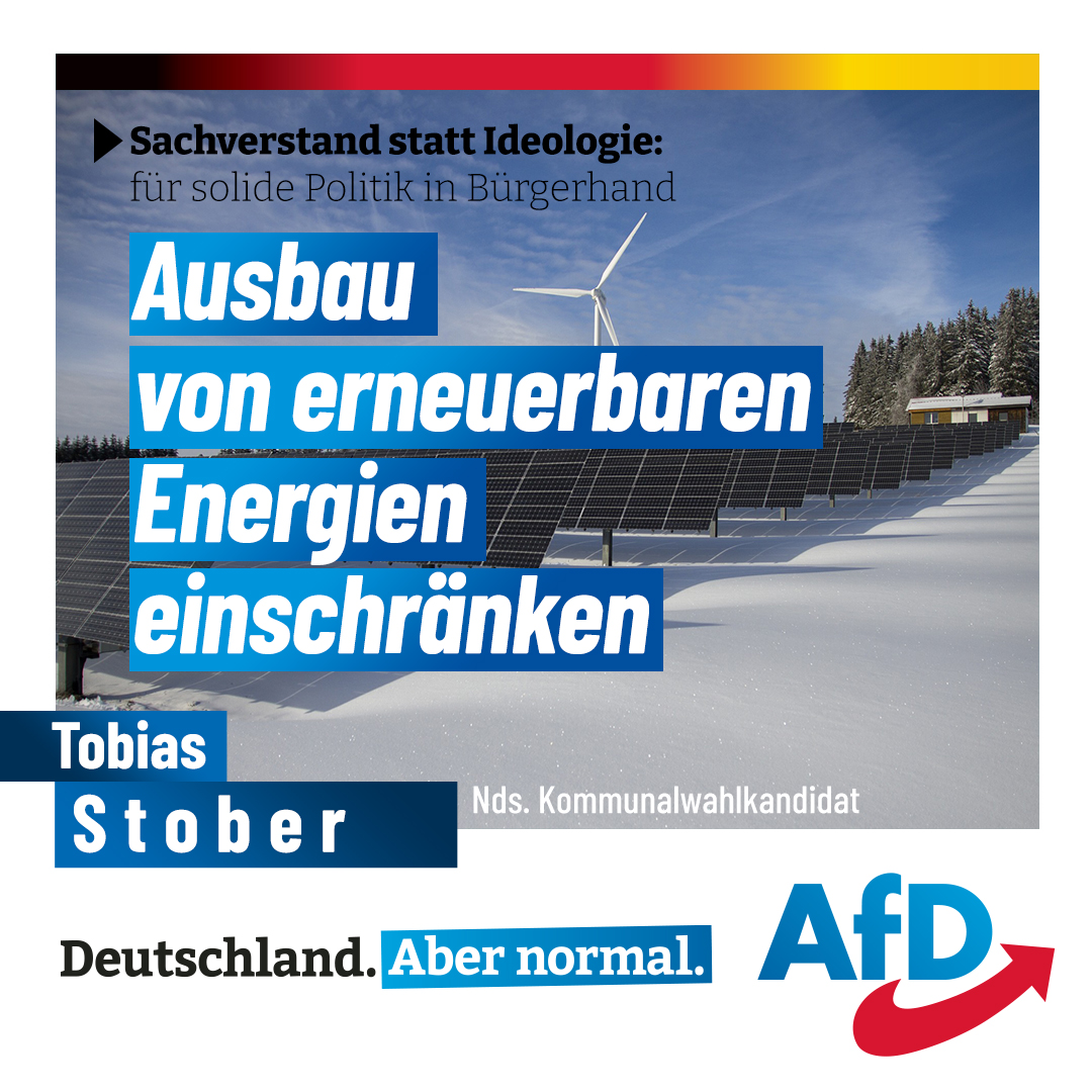 In Wäldern und Schutzgebieten dürfen keine Wind- und Solaranlagen errichtet werden. Ich setze mich für die Bewahrung des heimatlichen Landschaftsbildes, unserer Um- und #Tierwelt ein. Vorrangflächen für #Windenergieanlagen sollen nur bei breiter Zustimmung der betroffenen Bürger und nur noch an Standorten zugelassen werden, an denen keine Beeinträchtigungen für #Mensch, #Tier oder das #Landschaftsbild zu erwarten sind. Wald- und Schutzgebiete sind generell nicht anzutasten.