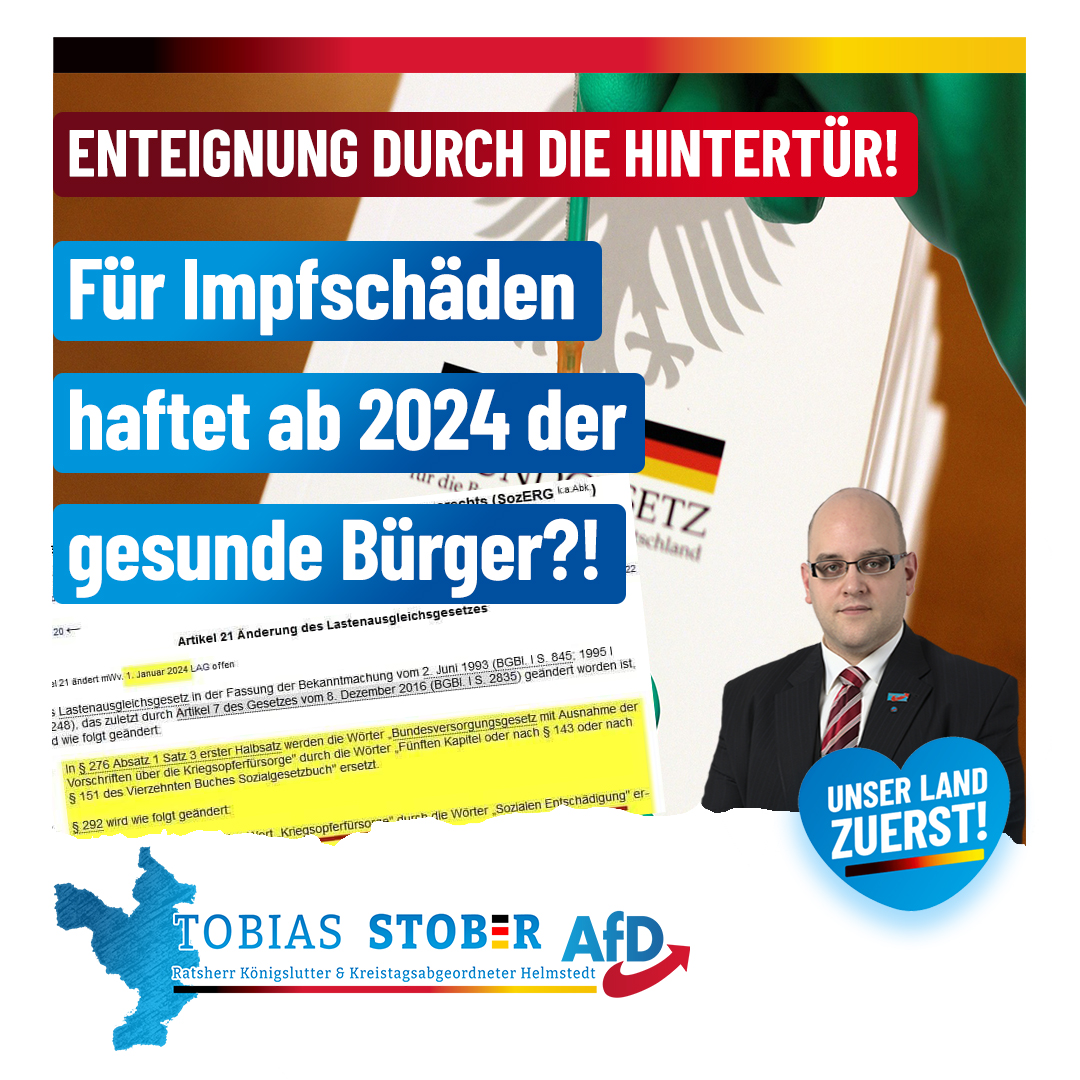 Im Zuge des zukünftigen Gesetzestextes könnten jedoch solche Impfschäden in Verbindung mit dem „umformulierten Lastenausgleichsgesetz“ zur Folge haben, dass laut Artikel 14 des Grundgesetzes eine Enteignung, die dem Wohle der Allgemeinheit dient, dafür genutzt wird.
