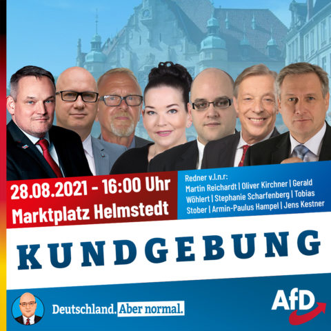 Wahlkampf-Kundgebung im Landkreis Helmstedt am 28.08.2021 von 16:00 Uhr bis 18:30 Uhr auf dem Marktplatz Helmstedt. Redner: Jens Kestner, MdB...
