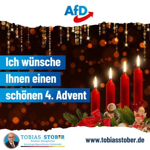 Liebe Freunde, Parteikollegen und Unterstützer der AfD,   Ich wünsche Ihnen und Ihrer Familie einen schönen 4.Advent. 🕯🕯🕯🕯🍀